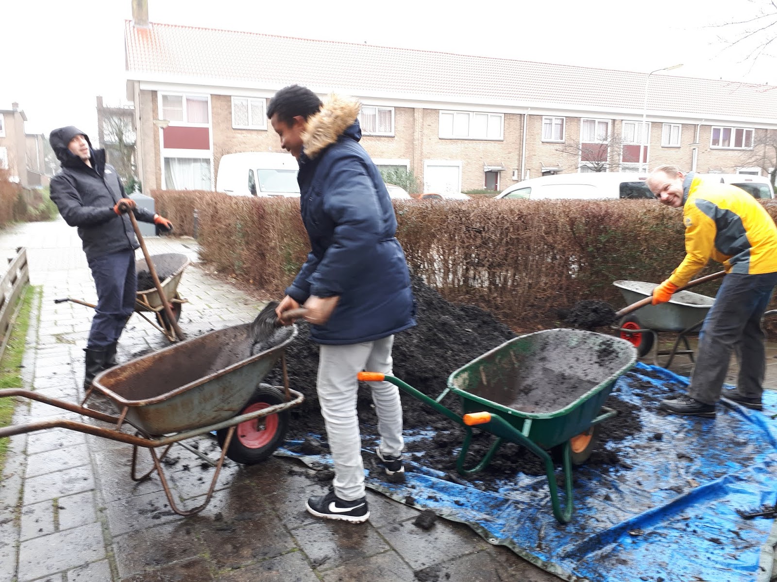 Alles is nog grijs en nat, maar toch is het nieuwe seizoen al van start gegaan. Te beginnen met onze inmiddels traditionele Nieuwjaarsborrel bij Pauline en JJ.Er zijn veranderingen in de samenstelling van de groep. Markus en Yvonne, medeoprichters van de Prinses op de Erwt gaan verhuizen naar Amsterdam Noord, waar ze in een spannend nieuw drijvend woonproject gaan wonen. Jammer voor ons, maar heel leuk voor hun! Maar er komen ook weer mensen bij: Damian heeft vorig jaar al meegewerkt aan de bouw van het schuurtje en gaat nu ook echt tuinieren. Maud is kort geleden in Diemen komen wonen en draait al helemaal mee. Berhane, die landbouwer was in Eritrea, komt op klusdagen kijken of hij mee wil gaan doen. Gisteren heeft hij al hard meegewerkt.